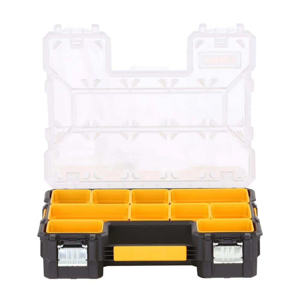 The DEWALT DWST14825 is a 10-compartment organizer made to withstand the rigors of the jobsite. This organizer has an integrated handle for easy portability. The DWST14825 can be customized in multiple configurations according to the users needs.