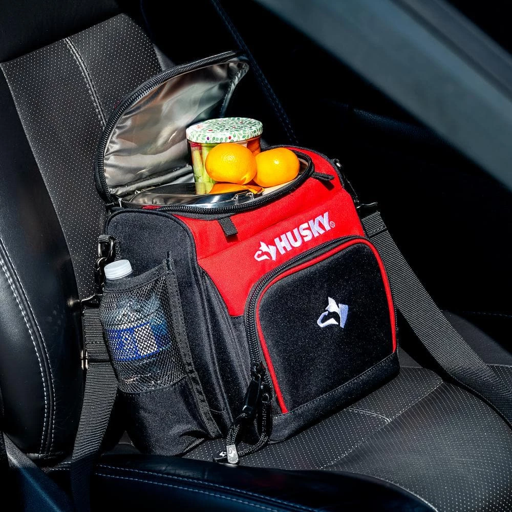 The Husky 9 in. Lunch Cooler box bag is easy to clean and features leak-proof lining with high density thermal insulation. This jobsit meal Cooler box bag will keep your items both hot and cold with the fully insulated internal compartment and external pocket. This Husky cooler box bag features an additional external utensil pocket on the back. Great for carry on luggage, outdoor festivals, races, concerts, camping and keeping your items fresh on the go. Pairs well with our Husky Tool Bags for on-the-job meals. This product carries a 3-year limited warranty.