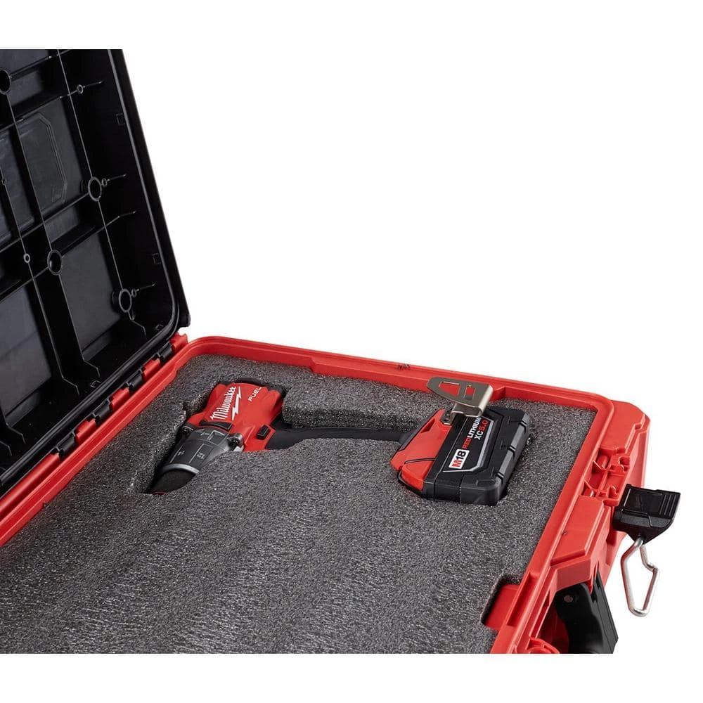 Our PACKOUT Modular Storage System is the industry’s most durable and versatile storage system. The PACKOUT Tool Case with Customizable Foam Insert has an impact-resistant molded base that users can connect with all other PACKOUT system components via integrated locking cleats. This durable tool storage box is constructed with impact resistant polymer and a metal reinforced locking point so it can withstand harsh job site environments. Our heavy-duty tool case is IP65 rated weather seal protects tools and accessories from rain and other jobsite debris. The Tool Case has a 75 lbs. weight capacity and includes a customizable foam insert, which allows you to trace and cut out custom pockets to securely store and protect your tools. Our PACKOUT Modular Storage System allows you to customize and build your own storage system to easily transport and organize your tools and accessories.