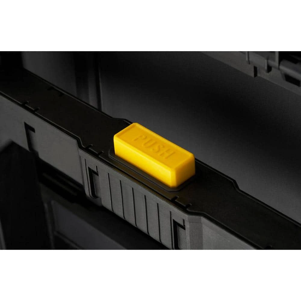 Store all of your go-to tools in 1 convenient place with the Stanley Modular Rolling Tool Box. This 3-in-1 portable workshop solution includes a deep, extra-large bin for safe and convenient storage of power tools and hardware, a medium-sized tool box with removable tote tray ideal for storing hand tools, and a shallow tool box for small parts and accessories. The auto-lock front stacking latch lets you quickly connect and release each tool box with 1 hand. Move this tower around your job site with ease using the heavy-duty wheels and wide telescopic handle.
